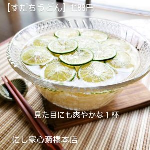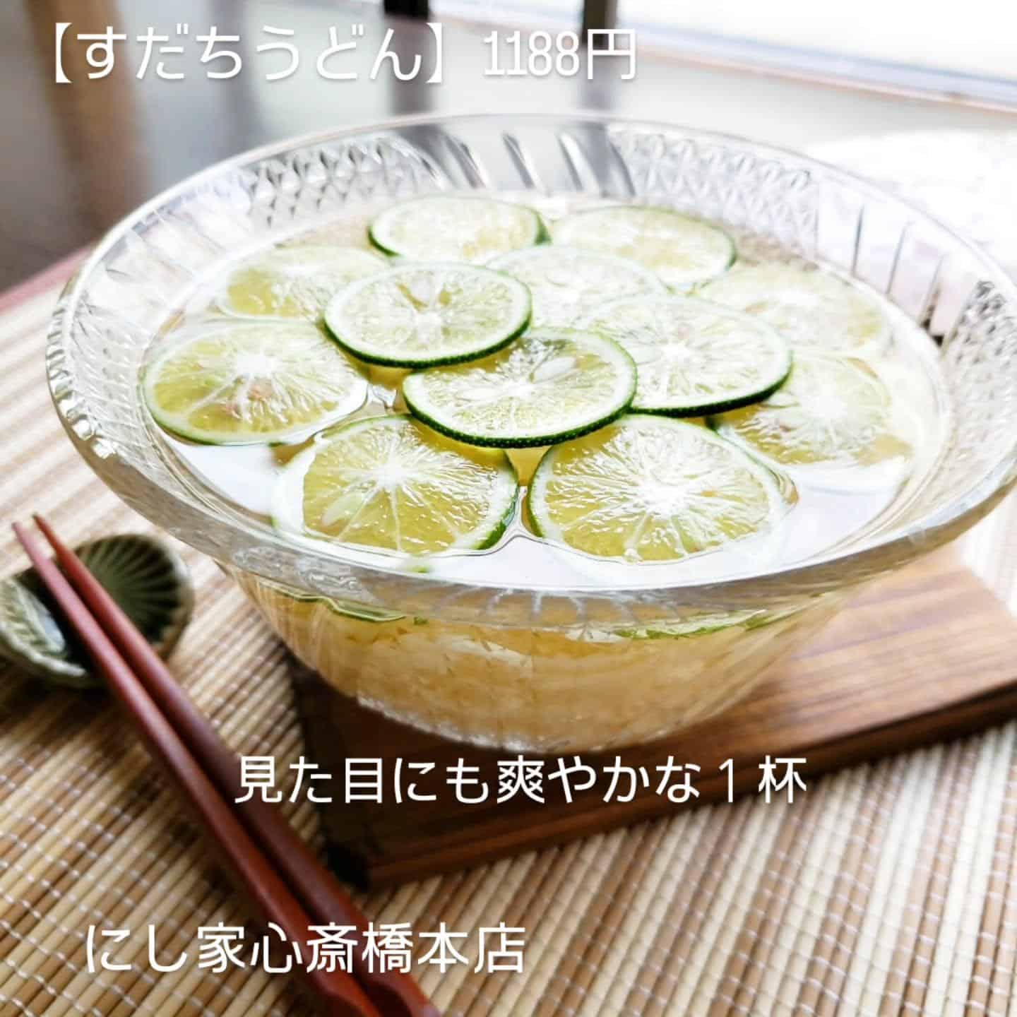 【すだちうどん/見た目にも爽やかな1杯】@にし家心斎橋本店